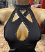 Voel jezelf gekleed maar ook verleidelijk in dit mooie zwarte jurkje versierd met cut-outs en studs zowel aan de voor- als achterkant. Stijlvol jurkje van het model "Low Back" design, waardoor het een prachtige rugzijde met diep V-snit heeft. Lees meer..